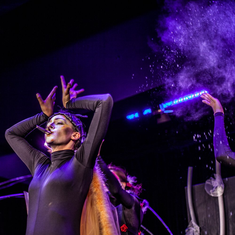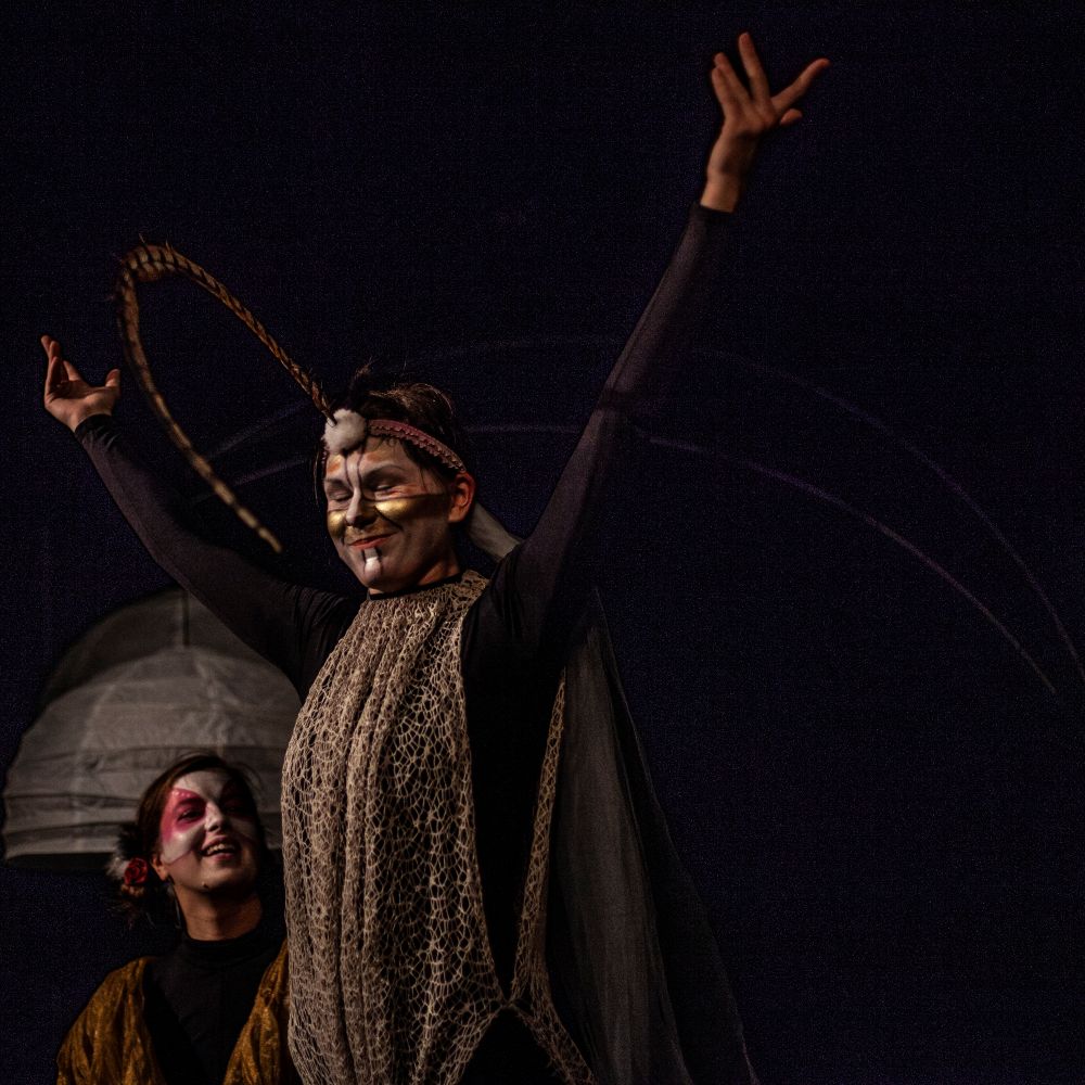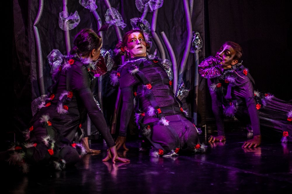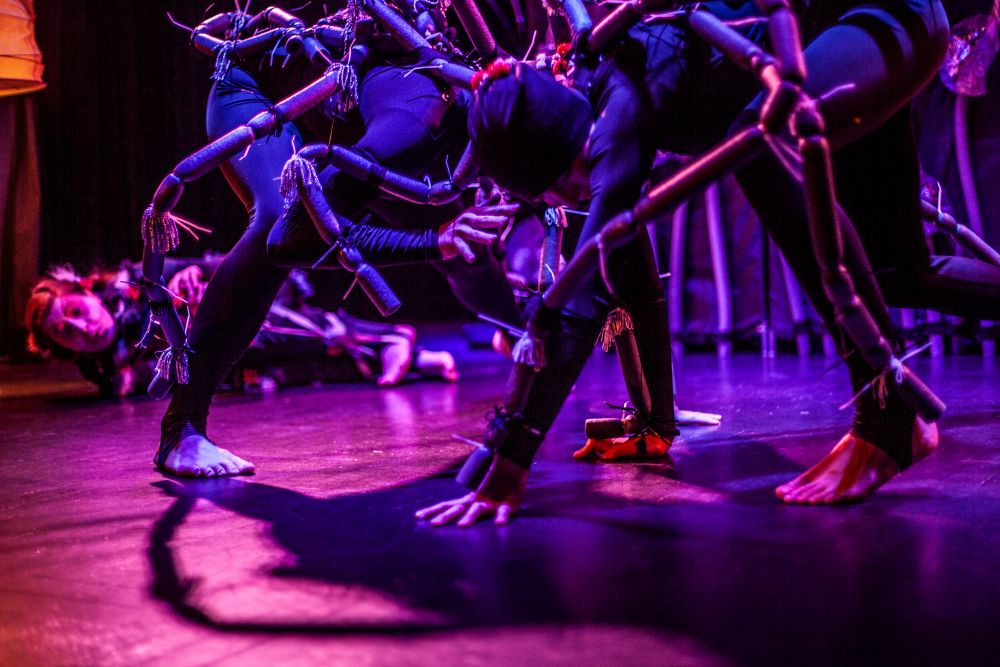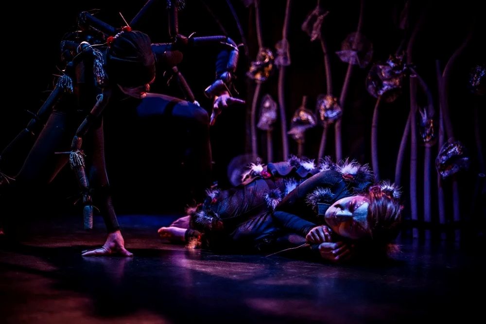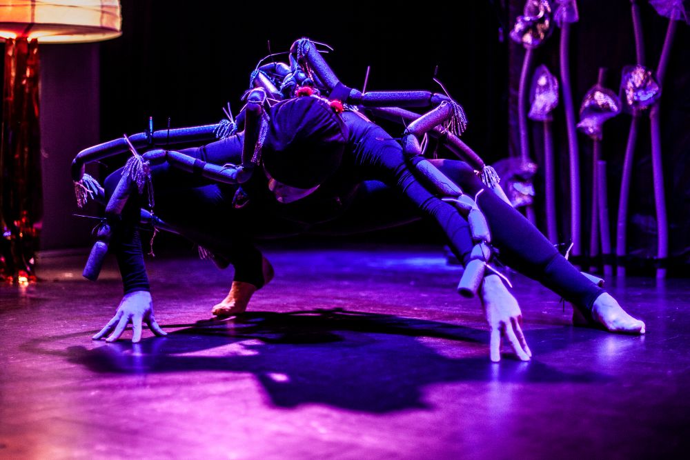 „Między oWadami” to przedstawienie, w którym teatr fizyczny, pantomima, sensoryczna scenografia oraz grana na żywo muzyka przybliżają widzom pełne symboli życie insektów (komara, muchy, pszczół, gąsienic, ćmy i stawonogów – pająków).