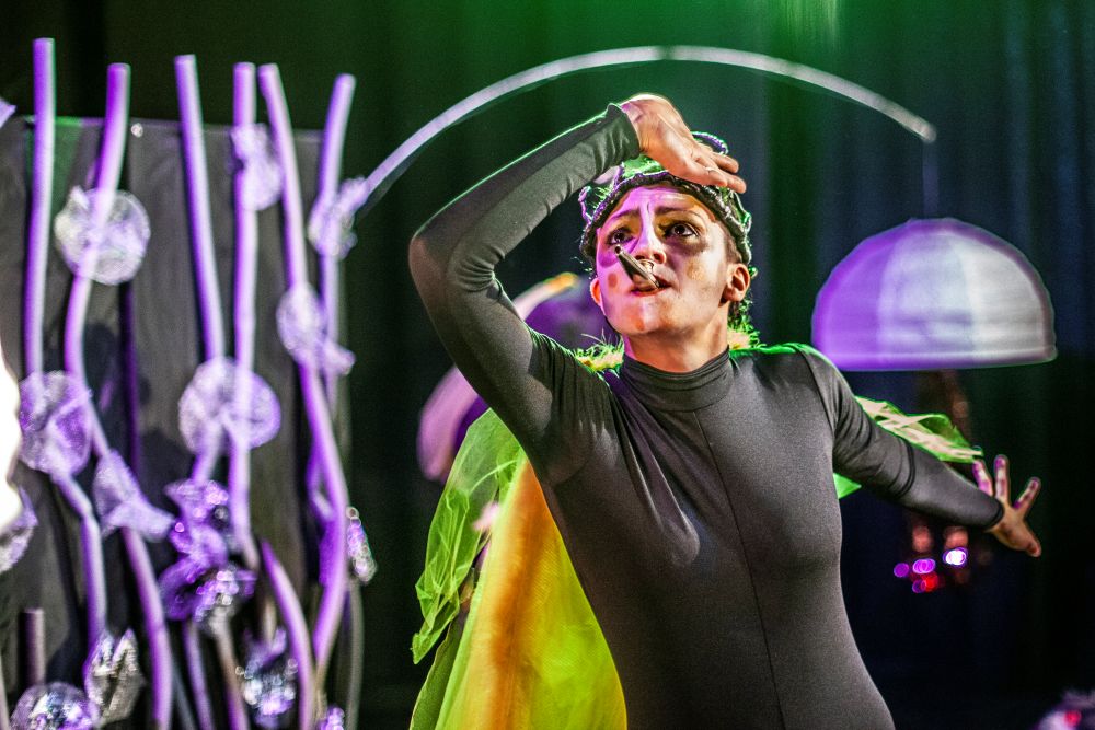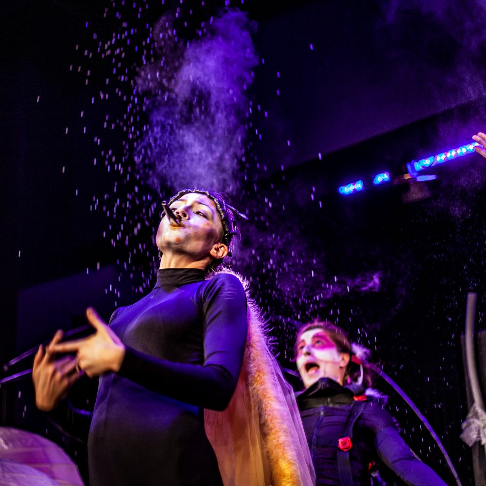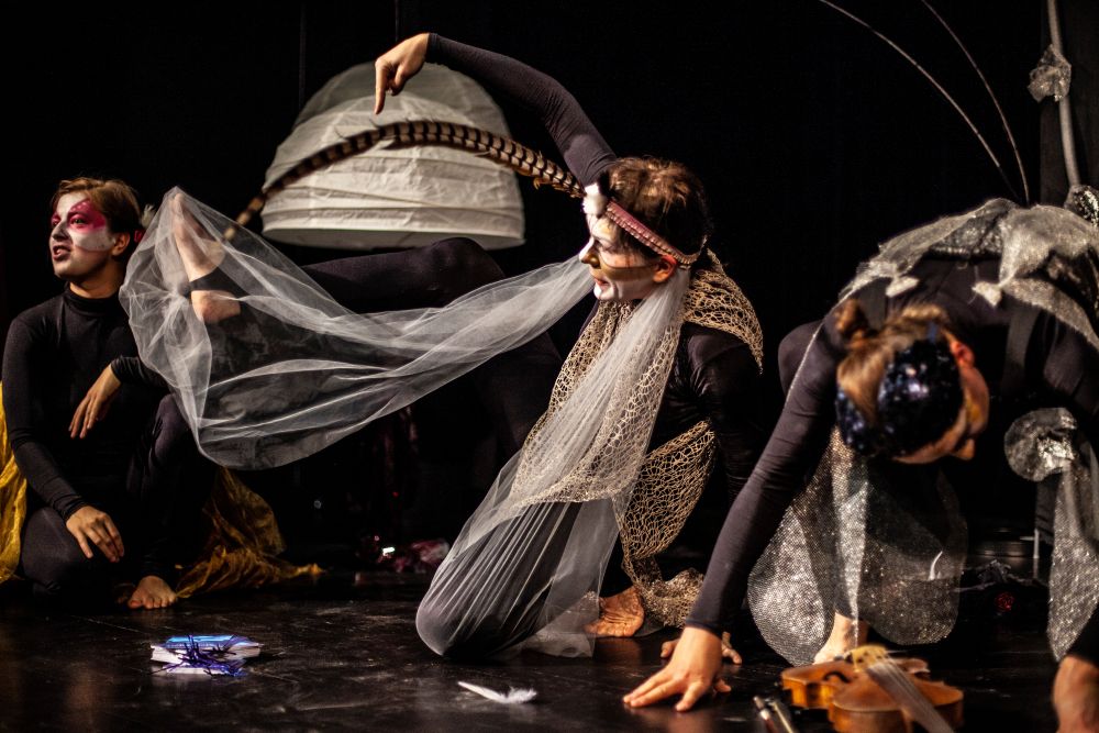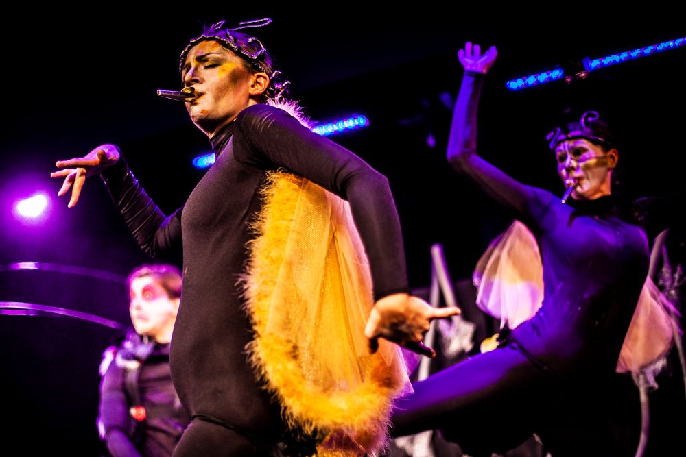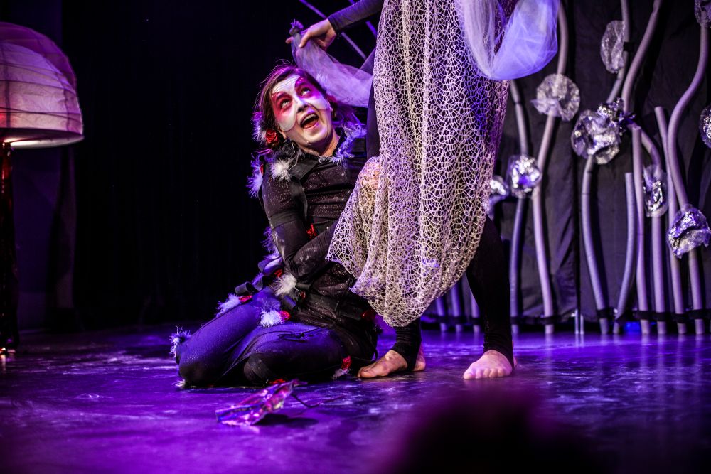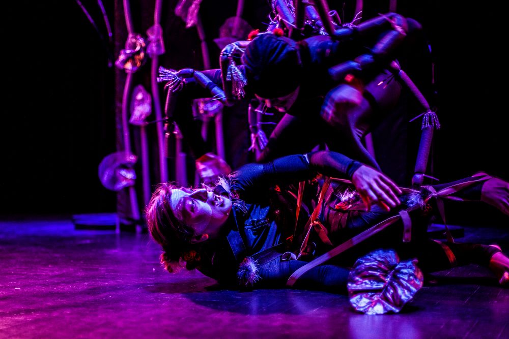 „Między oWadami” to przedstawienie, w którym teatr fizyczny, pantomima, sensoryczna scenografia oraz grana na żywo muzyka przybliżają widzom pełne symboli życie insektów (komara, muchy, pszczół, gąsienic, ćmy i stawonogów – pająków).